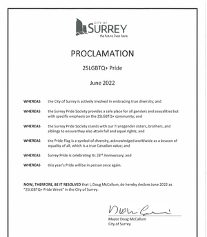 7 – Sept 1 First LGBTQ+2S exhibit Museum of Surrey, Cloverdale